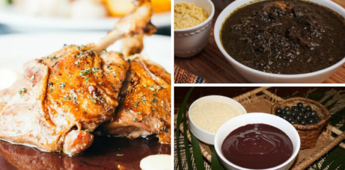 Já o famoso pato no tucupi mistura a ave cozida com o molho amarelo extraído da mandioca brava; jambu, que provoca uma leve sensação anestésica na boca; e temperos típicos da Amazônia. Servido com arroz ou farinha local, o preparo representa a riqueza da gastronomia regional e suas técnicas ancestrais.